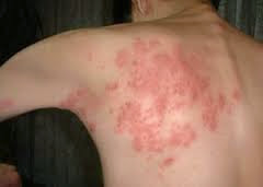 Tanda dan Gejala : Sebelum timbul gejala kulit biasanya muncul demam, pusing, pegal-pegal seperti lu biasa. Kemudian kulit yang dipersarafi oleh saraf tempat tinggal virus-virus varisela-zoster yang bersembunyi menjadi kemrahan. Kemudian akan munvul vesikel-vesikel (gelembung-gelembung) berisi cairan jernih yang kemudian menjadi keruh. Jika terjadi infeksi sekunder maka bisa berdarah ataupun bernanah. Pada tempat itu juga dapat dirasakan seperti baal atau menjadi kaku. Kemudian akan mereda sendiri dalam waktu kurang lebih 2 minggu.